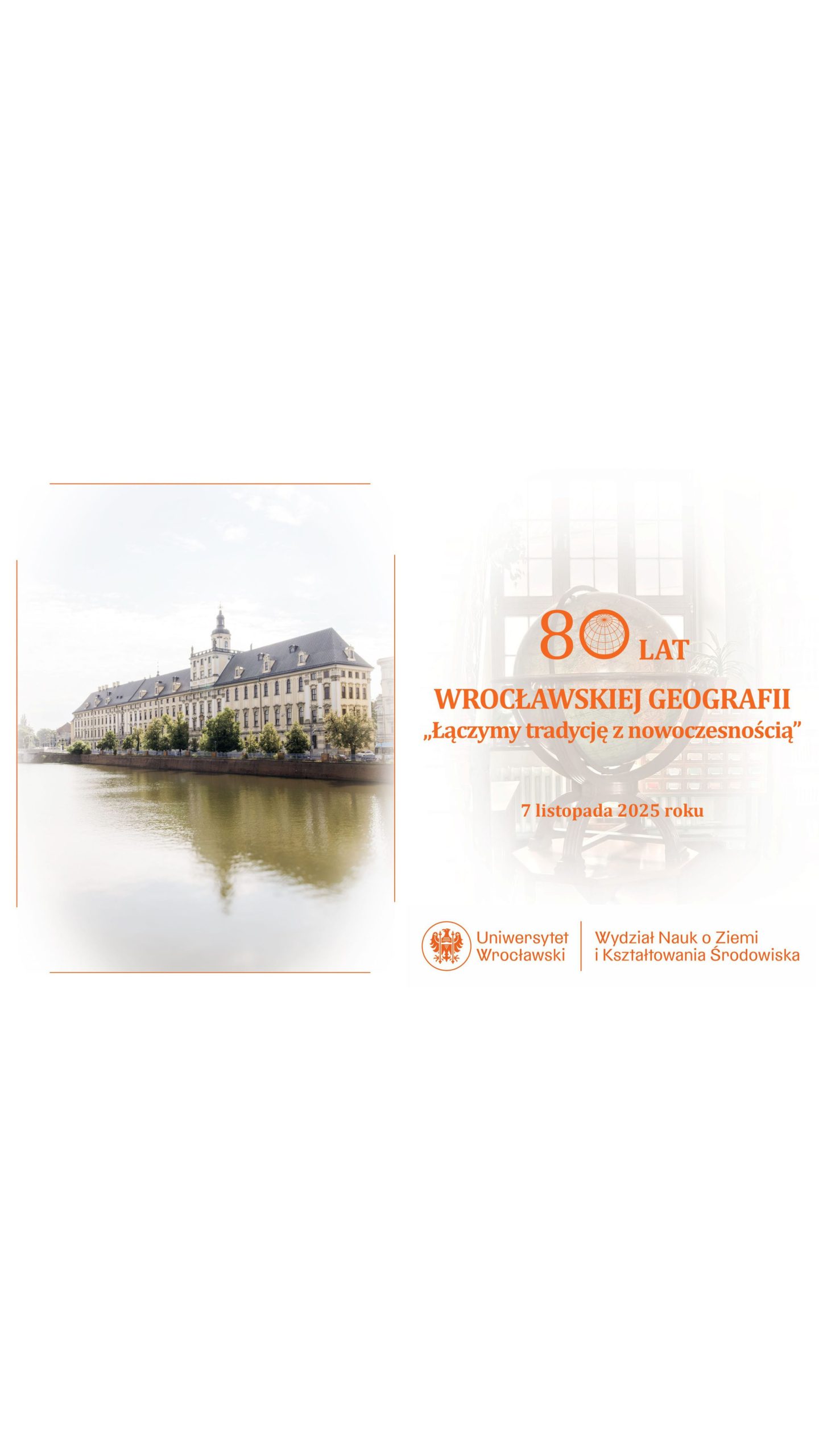 Serdecznie zapraszamy sympatyków geografii na udział w wydarzeniach związanych z jubileuszem 80-lecia Wrocławskiej Geografii pod hasłem „Łączymy tradycję z nowoczesnością”