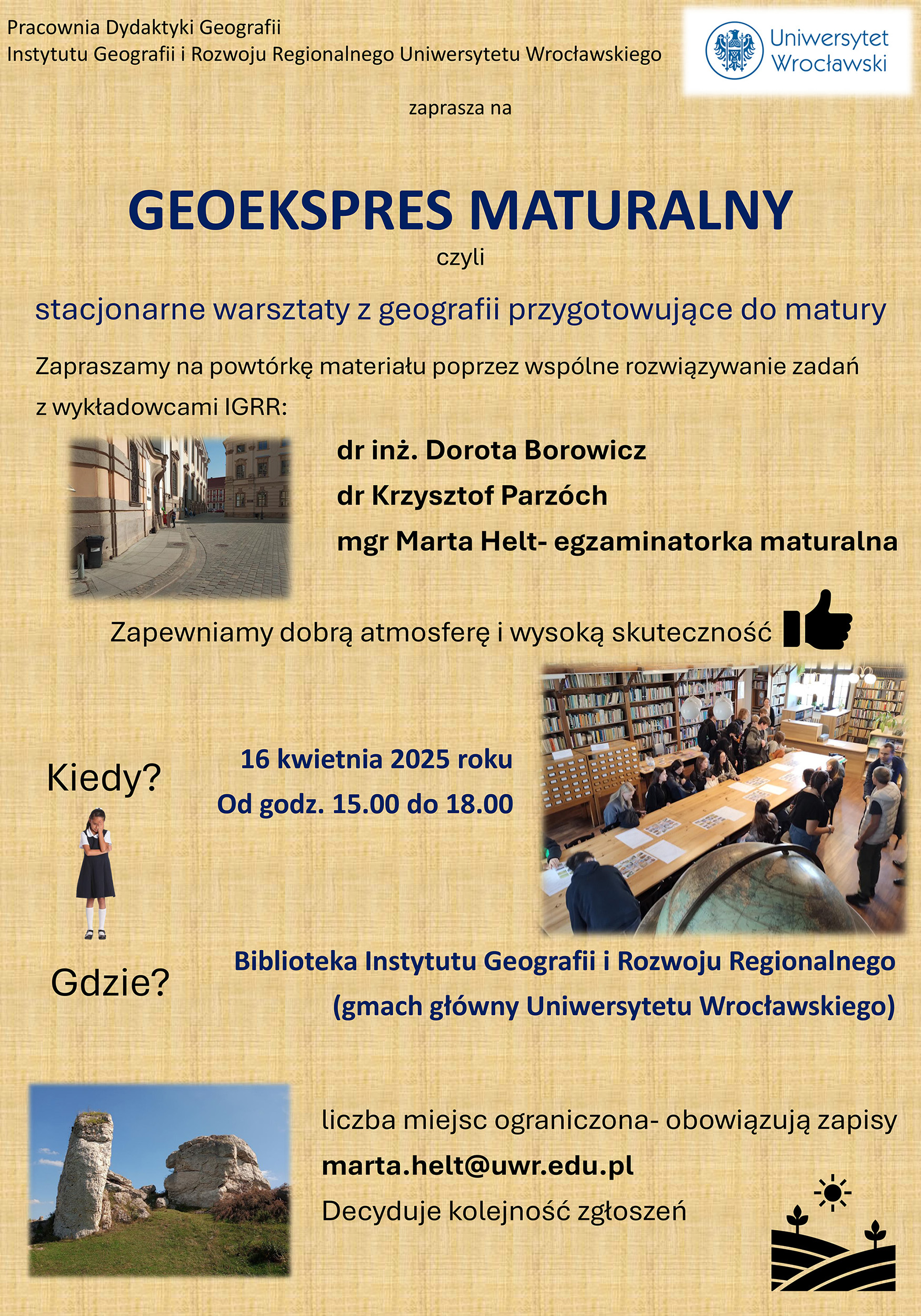 "Geoekspres maturalny" - stacjonarne warsztaty z geografii przygotowujące do matury